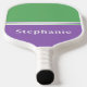 This pickleball paddle is simple, modern, minimal but bold and colourful with its purple and green stripes and your name.