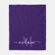 Minimal Purple Monogram Calligraphy Fleece Blanket