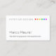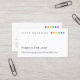 Clean, modern double-sided business card featuring bold typography and rainbow accents. The front displays 3 large phrases as your headline in minimal sans-serif style, complemented by a lovely dot color edge in vibrant rainbow colors (pink, orange, yellow, green, blue, purple). The back side presents your contact information in light, elegant typography for visual continuity.