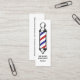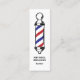 Minimalist and cool Barber Shop card featuring bold script featuring a barber pole.