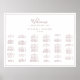 This minimal rose gold horizontal seating chart is perfect for a modern wedding. This horizontal sign can be used to organise your guests alphabetically or by table number by changing the headings. The modern romantic design features classic rose gold and white typography paired with a rustic yet elegant calligraphy with vintage hand lettered style. Customisable in any colour. Keep the design simple and elegant, as is, or personalise it by adding your own graphics and artwork. This wedding poster includes enough room for up to about 100 guests. Make room for more (or less) guests by clicking the "customise" button and decrease or increase the size of the font. In addition to the placement of each guest, personalise this sign with the names of the bride and groom and the wedding date.
