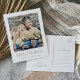 This minimal rose gold Merry Christmas portrait photo postcard makes the perfect simple holiday greeting. The design features classic blush pink and white typography paired with a rustic yet elegant script font with hand lettered style. Add your family picture and personalise the postcard with your family name, year, personal greeting, and names.