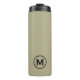 This modern travel mug design features a sage green and black colour palette with your monogram initial in classic block typography for a look that is simple and stylish, yet professional.