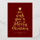 Minimal Script One Photo Red Merry Christmas Foil Holiday Card