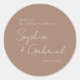Minimal Script round party favour sticker.