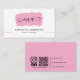 The front side highlights your name and profession with a contemporary artistic touch, while the back side features essential contact details, a QR code for quick access to your website or social media, and social media icons for easy networking. The combination of soft pink and minimalist typography adds a sleek, professional look that leaves a lasting impression.