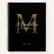 Minimal Script Metallic Black Gold Monogram Recipe Notebook
