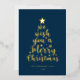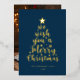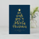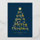 Minimal Script One Photo Navy Blue Merry Christmas Foil Holiday Card