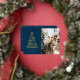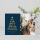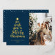 Minimal Script One Photo Horizontal Navy Blue Merry Christmas Foil Holiday Card