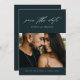 A romantic, simple photo save the date card featuring beautiful script calligraphy, horizontal photo and minimal text on the front. The back has a vertical photo with wedding website. Click the edit button to customise this design.