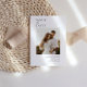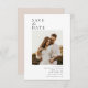 This save the date card features elegant script and serif fonts with a matching photo template in the centre. This piece is perfect for a chic, minimal, elegant wedding theme. Personalise this save the date card with the couple's photo, names, and wedding date.