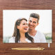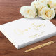 This minimal and elegant white wedding guest book features your choice of real gold, silver or rose gold foil, your first names in a chic modern script, and your wedding date and location in classic serif typography. You can personalise the title on the spine and add your favourite engagement photo on the back.