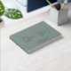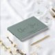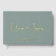 This minimal and elegant sage green wedding guest book features your choice of real gold, silver or rose gold foil, your names in a chic modern script, and your wedding date and location in classic serif typography. Personalise the title on the spine.