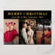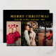 Minimal Script Three Photo black Merry Christmas Foil Invitation