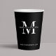 Add a personal touch to your next corporate event or function with these personalised business monogram paper cups. These minimalist black and white paper cups include space for your company name or logo as well as your website. A great marketing tool whilst serving drinks at your business event, grand opening or corporate function.