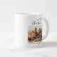 Minimal Simple Merry Christmas Script Family Photo Giant Coffee Mug. Black script on white. Add your photo and your text and make a trendy and chic Christmas mug.