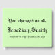 This mournful funeral or memorial guestbook features the message "You changed us all,", and the personalised name and birth/death dates of the individual who has passed away. It could be used to record sympathetic wishes for the family and friends of somebody who has recently passed on.