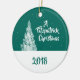Minimal Snowy Tree Teal and White Holiday Keepsake Ceramic Tree Decoration
