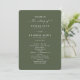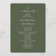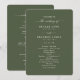 Minimal Solid Monstera Green Wedding Ceremony Program. This modern minimal Order of Services Card is simple classic and elegant with a plain solid background colour and a pretty signature script calligraphy font with tails. Shown in the Monstera Green Colorway. Available in several colour options, or feel free to edit the colours from within the editor (click customise further while personalising).