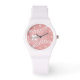 This fun softball watch features a simple pink softball graphic that has a chic, digitally created texture and white seams - customise with her name and monogram or jersey number - by katz_d_zynes