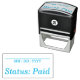 This basic, simple rubber stamp design features the messages "Status: Paid" and a line where a payment date can be written. It could perhaps be used to indicate that a bill or invoice has been paid in full.