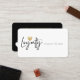 Promote your loyalty program to your current clients and new customers with our minimal and stylish loyalty love rewards program card. The modern minimal design features "Loyalty" designed in a modern brush script calligraphy typography with a simple faux gold heart. The reverse side features 6 simple white hearts with the six heart designed in a stylish faux gold. Customise with business name, loyalty offer and details.