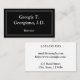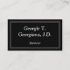This traditional and minimal business card design features a black background, and a double-line border with a dashed line in between. It could be used by a professional barrister, lawyer, paralegal or attorney-at-law. The name, profession and contact details can be personalised.