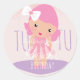 Minimal Tutu Girl's Birthday Cartoon Pink Glitter Classic Round Sticker