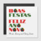 Modern Minimal Typography Portuguese Christmas Greetings with a very minimal design for those who believe that less is more. This product is especially intended for all Portuguese-speaking people and anyone who wishes to send happy Christmas greetings to someone of Portuguese nationality or who appreciates Portugal. Happy Holidays and Happy New Year - Boas Festas e Feliz Ano Novo - are the most traditionally used wishes in the festive season. The green and red colours used in the letters and in some backgrounds are also the colours of the national flag. Therefore, this lettering will undoubtedly be to the liking of any Portuguese or Portuguese American. The letter "O" has been replaced with a festive circle adorned flowers, foliage, and playful semi-circles, in vibrant and joyous hues, round like a bauble. This motif pays homage to the cherished Portuguese Rooster, infusing the festive season with its unique charm. The perfect circle, symbolising unity, invites you to embrace the spirit of togetherness during this particular time of year. Colours dance capturing the essence of celebration and warmth. A circle also reflects the continuous cycle of giving, receiving, and connecting that defines the holiday season. The vibrant colours infuse the typography with a sense of vitality and excitement like a round table where families gather, sharing stories and laughter, making a party of that special moment. You can remove or change the words and their font with Zazzle Design Tool to personalise this item to your needs.