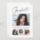 Clean, minimal, modern and elegant "4 photo" graduation announcement cards, featuring design elements of modern text with a unique calligraphy ink script. The graduate's photos are accented with a delicate & minimalist gradient boarder. The back of the card offers personalised text spaces for information about your graduation or can be cleared if you wish to hand write a message. Black & White or easily customise the background to match your school's primary colour or any colour of your choice. Perfect for the high school, college and university grad student seniors.