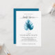 Modern bridal shower invitation design featuring watercolor monstera leaf illustration on a simple white background. Reverse side of the invitation is in deep blue colour.