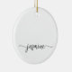 Girly Minimalist Simple Clean Black And White Monogram Name Script Custom Personalised Ceramic Ornament. These design featuring your first name in a pretty hand lettered style swash tail font signature typography (or calligraphy) black script on white colour background. These are easy to customise it. Great stylish feminine housewarming gift, also for birthday, mother’s day, sweet 16 birthday party, wedding, bridal shower, baby shower, for graduation party and It’s for the girl who loves unique stylish things.