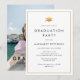 Minimal White Gold Grad Cap Photo Graduation Party Invitation