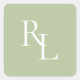 Minimal White & Green Wedding Couple Initials Square Sticker