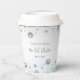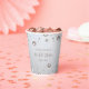 Modern and simple Bridal Shower paper cup featuring white pearls border on a grey gradient background and vibrant calligraphy text.