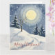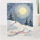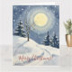 This tranquil Christmas card features a soft glowing moon over a snowy hillside painted in a minimalist watercolor style. The calm winter night setting and clean composition make it ideal for stylish seasonal greetings. The blank design allows you to personalize messages for loved ones or professional holiday notes.