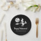Minimal Witch Girl Black And White Halloween Party Paper Plate