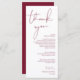 Minimalism Burgundy Script Place Setting Thank You Programme