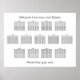 This simple modern minimalist 13 table seating chart is easy to personalize by typing your text into the personalization template to replace the placeholder text where appropriate (the name of the bride and groom, the names of the guests and any other text that you may wish to personalize). Should you then wish to make advanced adjustments such as changing the font style(s) or the font size(s) or the layout, please click the button "Edit using Design Tool" to customize further; the button is available by scrolling down in the personalization template.