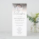 Minimalist 2 Photos Overlay Script Wedding Program. Modern elegance with your photo to the top edge behind a graduated tint layer with the text partially overlaid on top of your image at the bottom. Choose a different photo for the other side. The main header Welcome is in a stylish set script and the rest of the text you can easily personalise.