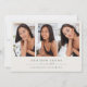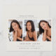 A simple and elegant double-sided graduation announcement and party invitation by Redwood & Vine Design Co, featuring a trio of vertical or portrait oriented grad photo on the fronts, with your graduate's name, class year, and school beneath in classic soft black serif and italic lettering. Customize the back with your graduation party invitation details.