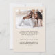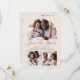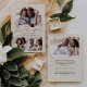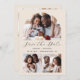 This simple, minimalist Save the Date card features a 3-photo collage, with an arch-shaped photo at the top and two smaller square photos at the bottom. In between, the words "Save the Date" appear in elegant black handwriting script, followed by the couple's names, wedding date and city in sans serif font on a beige background. Add a fourth, horizontal photo and a more detailed message with additional information on the back.