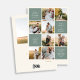 The front creates an immediate visual impact with a geometric 12-square collage layout. It features a dynamic balance of eight photo slots mixed with four dedicated text blocks, allowing your names and wedding date to weave seamlessly through your engagement memories. It’s a contemporary, editorial look that feels like a polished Instagram grid brought to life on paper.