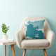 Modern throw pillow features an artistic abstract cloud composition in a simple trendy teal colour palette with watercolor accents. This abstract composition is built on an organic pattern of clouds with overlapping clouds casting highlights and shadows, which create depth and perspective in the design.