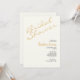 This invitation isn't just a piece of stationery; it's a statement of love and celebration. Its minimalist design speaks volumes about the purity of your union and the elegance of your love story. The slanted script, the gold accents, and the creamy background together form an invitation that is both understated and striking, inviting your guests to share in the excitement of your upcoming bridal shower.