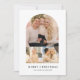 Modern holiday photo card featuring 3 of your photos arranged in an arch-shaped grid layout. Personalise the front of the multi-photo holiday card with your custom greeting and family name displayed in black lettering. The card reverses to a subtle black and white dot pattern.