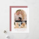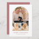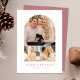 Modern holiday photo card featuring 3 of your photos arranged in an arch-shaped grid layout. Personalize the front of the multi-photo holiday card with your custom greeting and family name displayed in dusty rose lettering. The card reverses to a subtle mauve and white dot pattern.