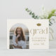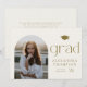 Announce your graduation to family and friends with this customisable photo graduation announcement card. It features gold minimalist typography and arch photo frame Personalise this boho graduation announcement by adding a photo, name, school and other details. This modern photo graduation announcement is available in other cardstock.