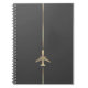 Minimalist Aviation Notebook with gold aeroplane vector image.