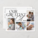 This charming Christmas Postcard design features a minimalist aesthetic with a touch of festive elegance. The front showcases a beautiful collage of family photos with their newborn baby. The Postcard announces the arrival of their "greatest gift" in 2024, making it a perfect way to share the joy of their new addition with loved ones this holiday season. The simple yet elegant design with a clean white background and black lettering creates a warm and inviting feel.